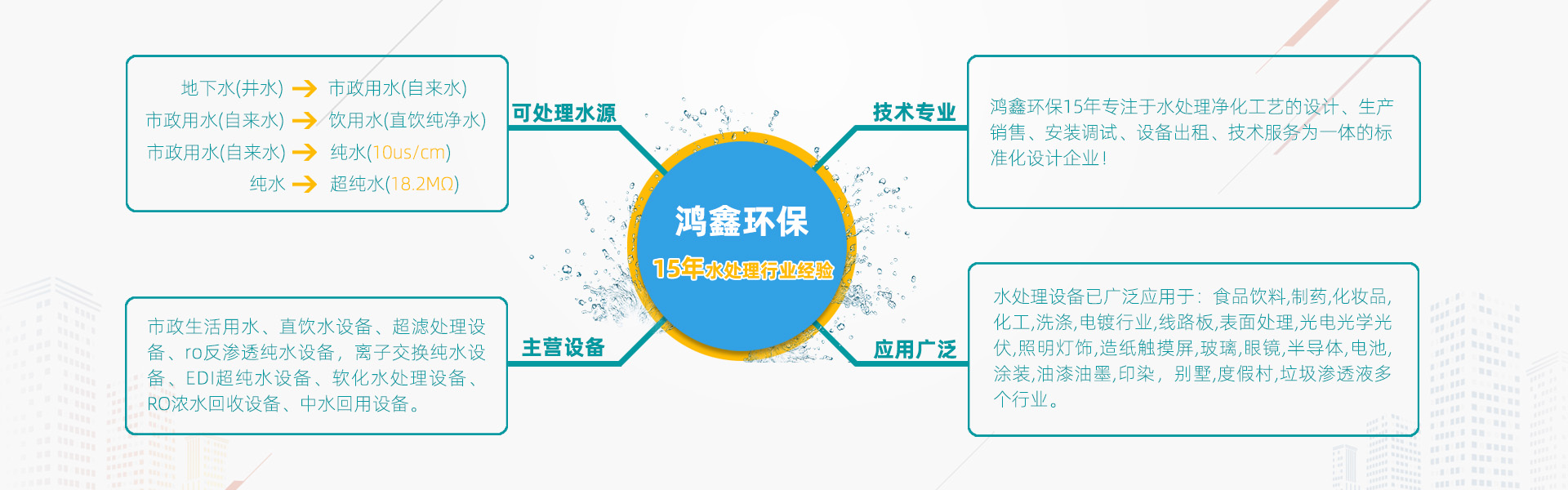 鴻鑫環(huán)保專業(yè)定制:市政生活用水處理設(shè)備、直飲純凈水設(shè)備超濾水處理設(shè)備、ro反滲透純水設(shè)備,離子交換純水設(shè)備、EDI超純水設(shè)備、軟化水處理設(shè)備、RO濃水回收設(shè)備、中水回用設(shè)備。
